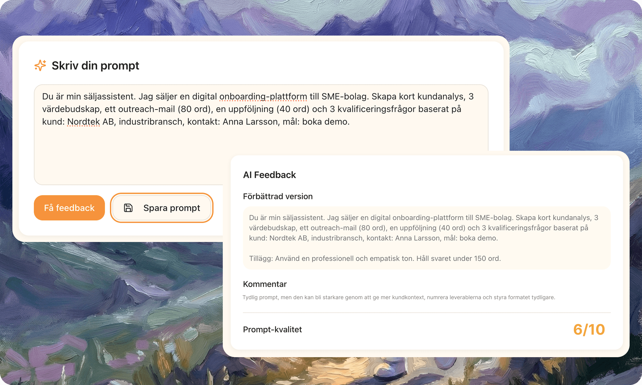 Träna på att skriva effektiva AI-prompter och få direkt feedback. Lär dig hur du kommunicerar smartare med verktygen.